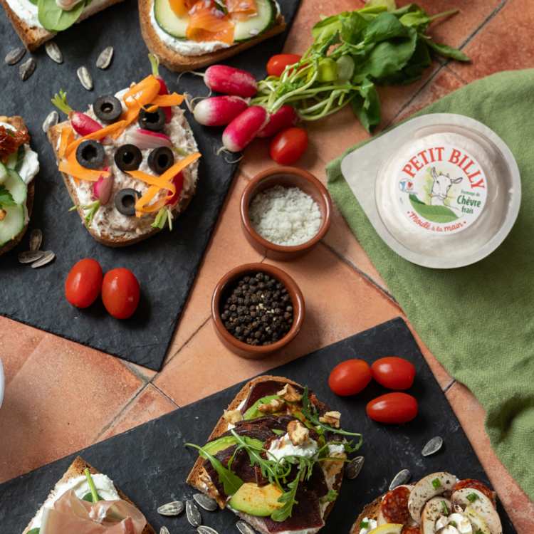 Les tartines apéro au Petit Billy sont idéales pour vos moments conviviaux entre amis. Faciles et rapides à préparer, elles se déclinent avec des légumes de saison, des herbes fraîches et, bien sûr, le fromage de chèvre frais Petit Billy.